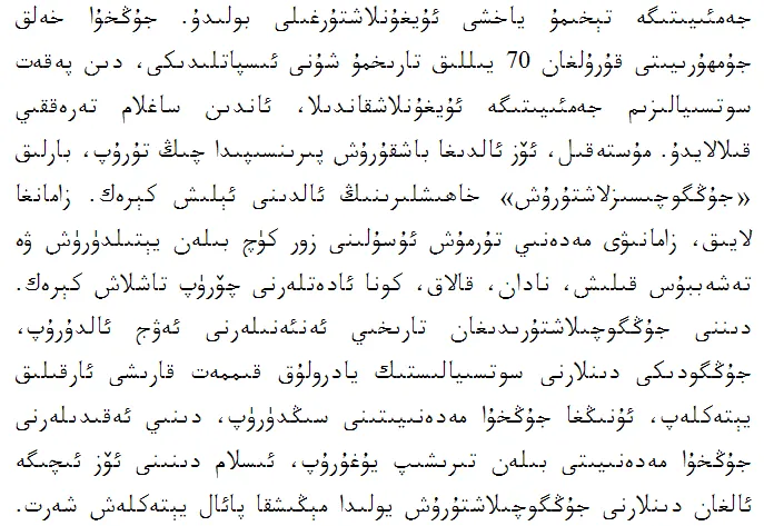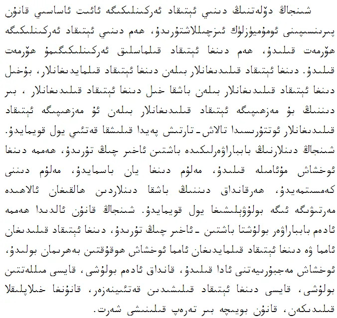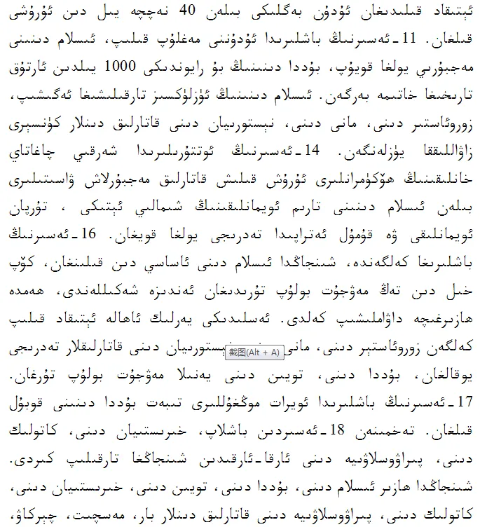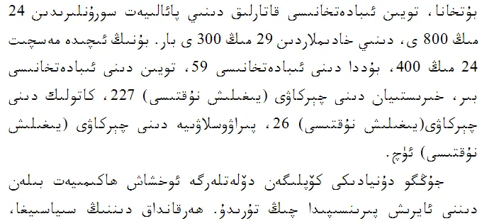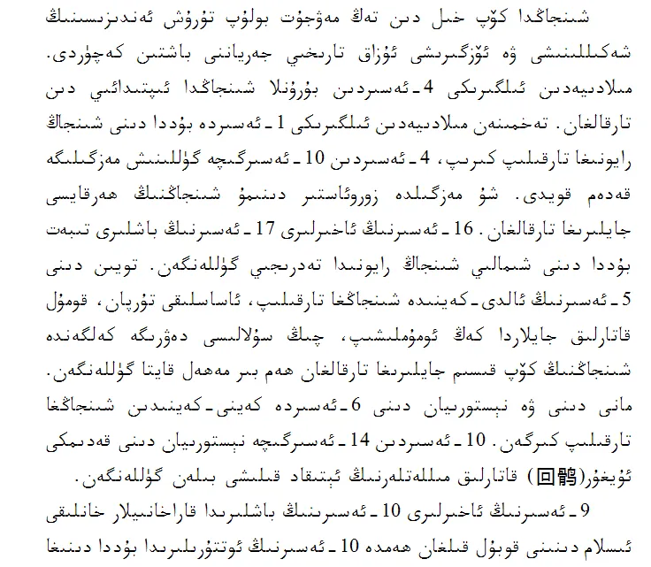 《新疆的若干历史问题》白皮书第六章《新疆历来是多种宗教并存的地区》(维文版)