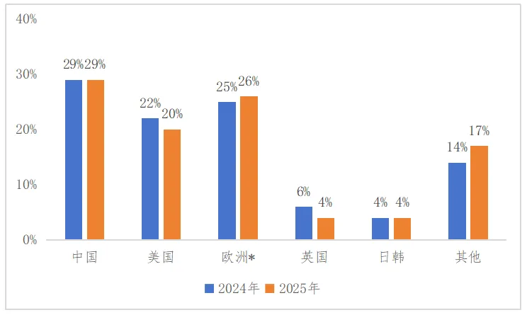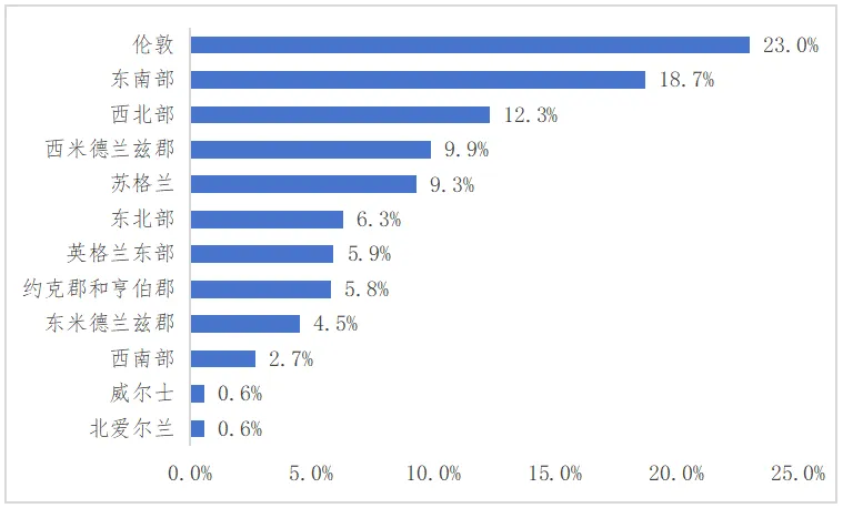 图162024—2025年英国收入前100名厂商分布情况(按数量占比)