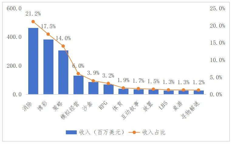 图12 2024年英国移动游戏“头部”品类分布图(按一级品类)