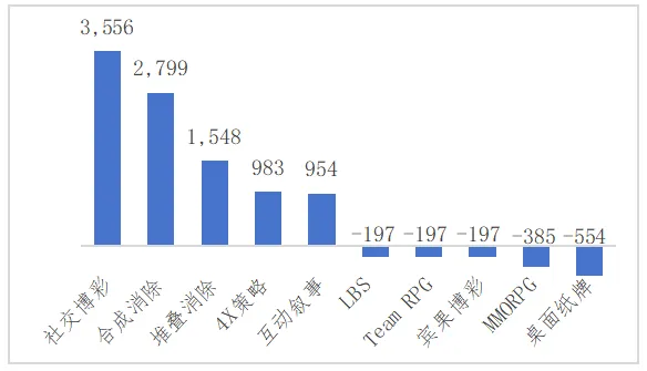 图13 2024年英国移动游戏增长品类前10(单位/万美元)(按二级品类)