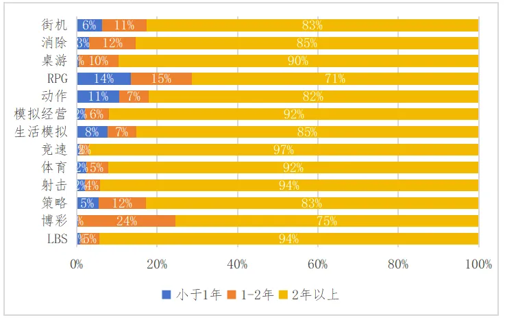 但想要进入英国移动游戏市场,需要做好长线运营准备和规划,在英国的前13名的收入品类中,有11个品类运营时间超过2年的产品占比超过80%,仅有博彩类和RPG两个品类运营时长超过2年以上的相对较少,分别占比为75%和71%。其中,RPG类的上线不足1年的新品占比相对最多,占比达到14%,这主要是受《我独自升级》等MMORPG新品带动,其在2024年5月正式上线英国市场,一度冲进iOS畅销榜第12名,但维持不到1周即迅速下滑,不足半年就跌出畅销榜,可见,英国移动游戏玩家对于RPG类产品并不像其他欧美市场那样缺乏热情,是愿意为高品质RPG类产品付费的,但是厂商需避免“割韭菜”式运营,要有耐心的、保持有节奏的更新内容,才能留住核心用户,从而站稳市场脚跟。具体如图15所示。