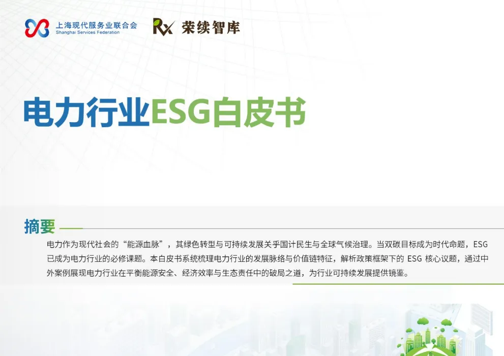 《2025年电力行业ESG白皮书》系统梳理我国电力行业从传统火电主导向清洁低碳转型的全过程,围绕碳达峰、碳中和目标,解析政策框架下的ESG核心议题与实施路径。
