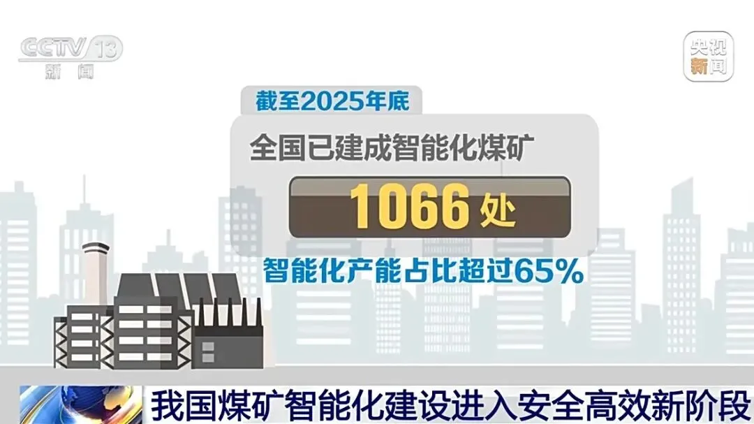 煤矿减人增安提效成果显著。截至2025年底,全国已建成的智能化矿井采煤、掘进工作面单班平均减人比例均超过20%。