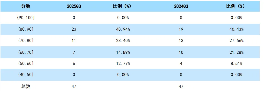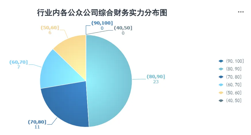 行业所有公众公司综合财务实力统计均值为75.41,极差值为50.19,标准差10.97。