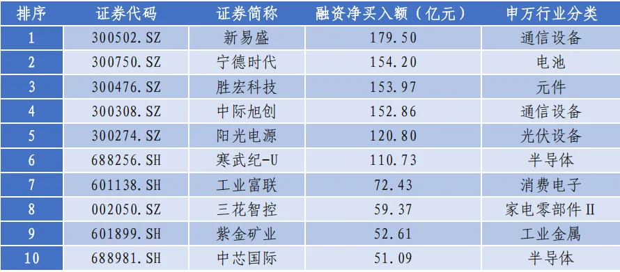 融资余额增长最多的10只股票中,有9只为科技股,而之前年度融资余额增加较多的股票以金融、电力等为主,融资余额的结构性变化也反映了我国股票市场的变化,科技股被市场关注的程度迅速提高。