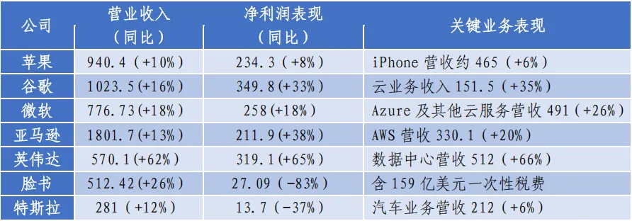 表5 2025前三季度美国七巨头业绩情况表(单位:亿美元)