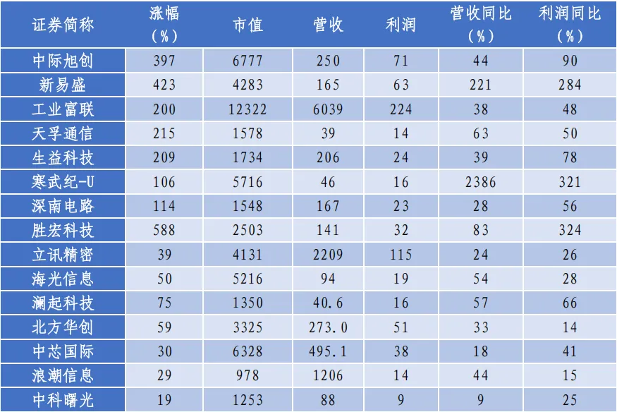 通信行业指数的出色表现主要与光通信行业上市公司的业绩爆发式增长有关,“新易盛”“中际旭创”和“天孚通信”是三家典型代表,它们的产品与算力需求密切相关。