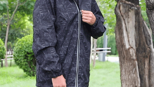 因为衣服外层用了科技荷叶面料,它还能轻松抵御雨水污渍。