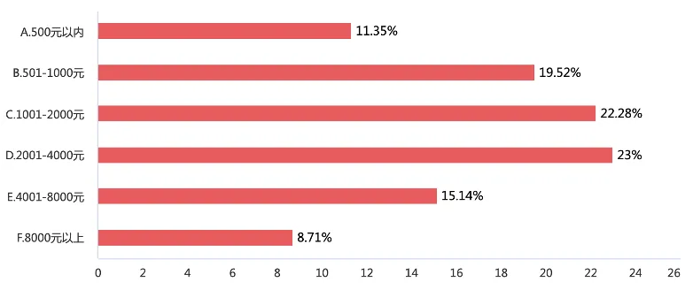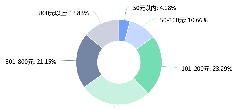 2025年的调查,咖啡消费金额更为具体,超8成受访者月均消费咖啡100元以上。其中,月均咖啡消费800元以上的占到了13.83%,也就是说这部分消费者日均购买咖啡一杯。