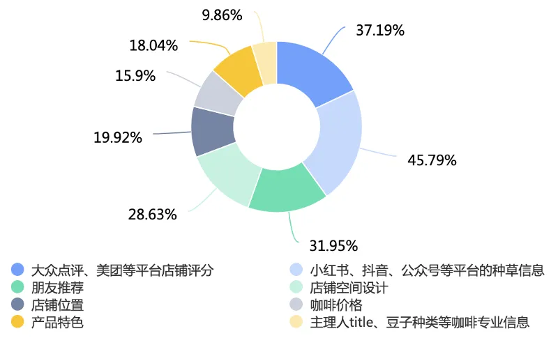 消费者对咖啡馆的口碑极为看重,除了朋友推荐外,小红书、抖音的种草信息让消费者有了一个直观感受,而大众点评、美团的评分让消费者看到综合评价。