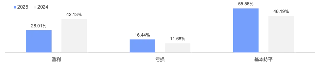受访的咖啡馆主理人中,盈亏持平的占到了55.56%,亏损的比例有所增加。2025年比2024年差的占比31.02%。