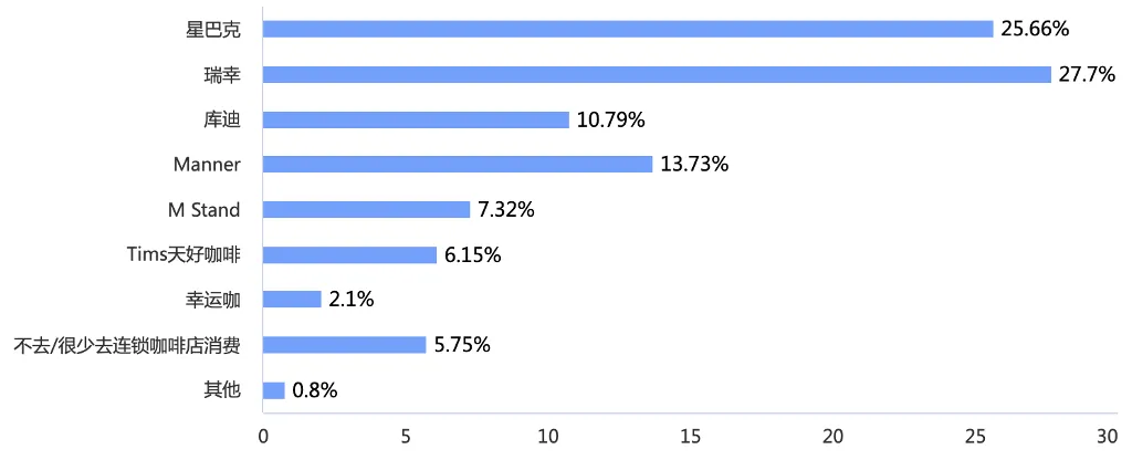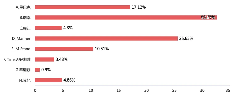 消费者喜欢的连锁咖啡品牌,星巴克和库迪的受欢迎程度均大幅提升,库迪与瑞幸的差距进一步缩小。
