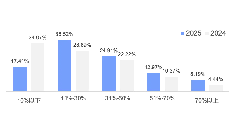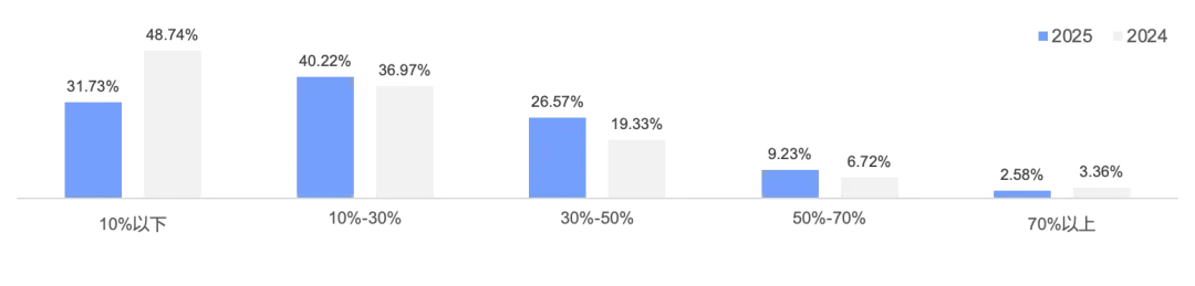 2025年,参与调查的男性消费者占比45.94%,相比2024年增加了10%。在消费者职业分布中,计算机和广告传媒行业继续处于前列,建筑/土木/房地产行业由6.49%(2024)上升至12.53%。旅游/酒店/餐饮行业也由10.15%提高到17.11%。