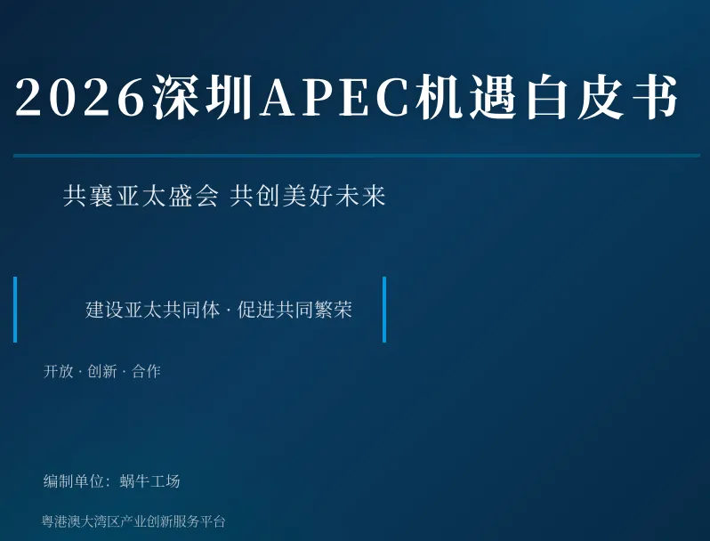 扫码添加【蜗牛工场小助手】发送【APEC】,免费获取完整版《2026深圳APEC机遇白皮书》PDF,深度解锁政府策略、企业布局与市民红利!
