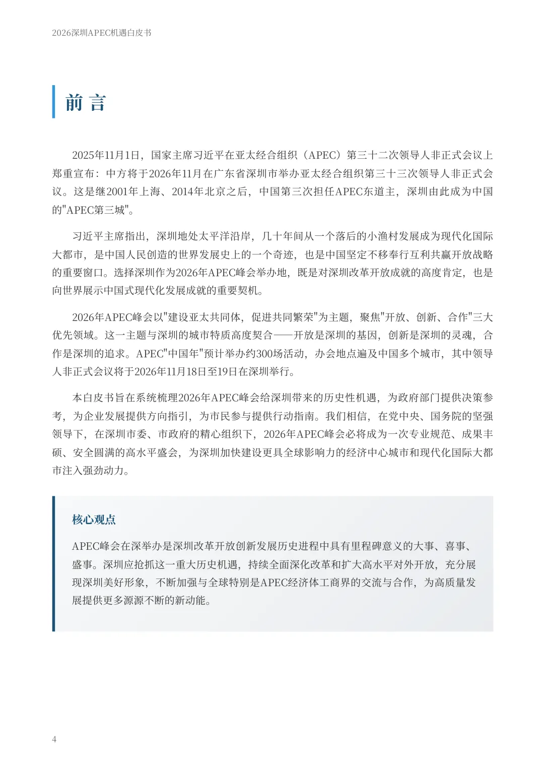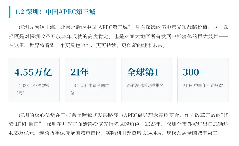 2026年APEC以“建设亚太共同体,促进共同繁荣”为主题,聚焦“开放、创新、合作”三大优先领域,这正是深圳的城市基因!
