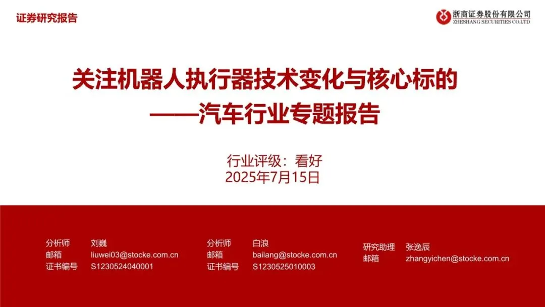 人形机器人执行系统之旋转关节专题报告:扭矩跃升,动力内核|附32页PDF文件下载