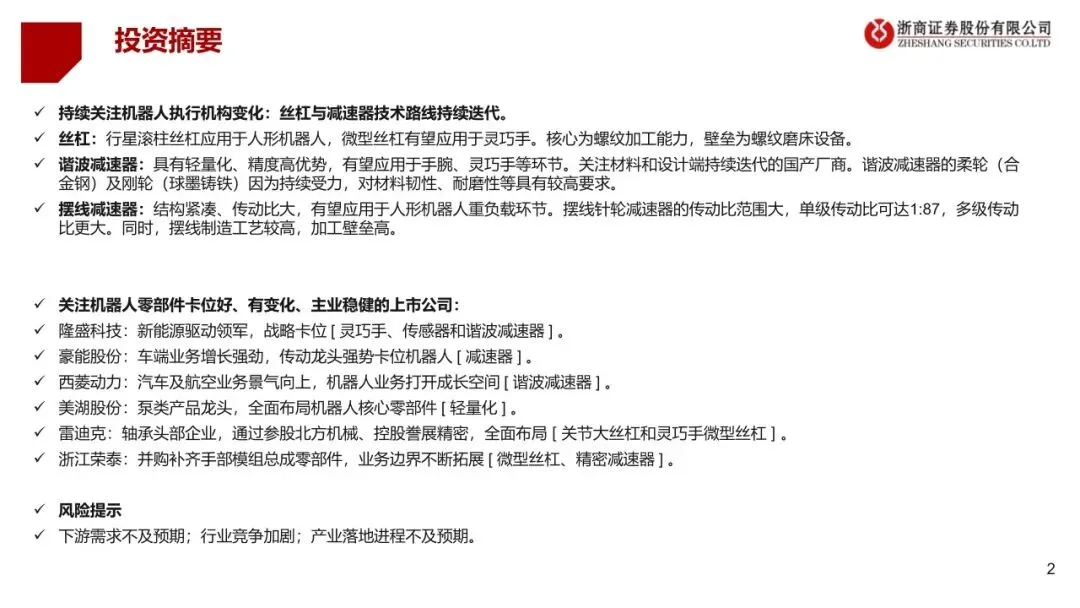 持续关注机器人执行机构变化:丝杠与减速器技术路线持续迭代。