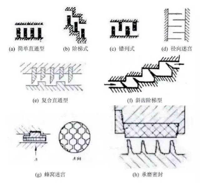迷宫密封是离心式压缩机级间和轴端最基本的密封形式,根据结构特点的不同,可分为平滑式、曲折式、阶梯式及蜂窝式等四种类型。