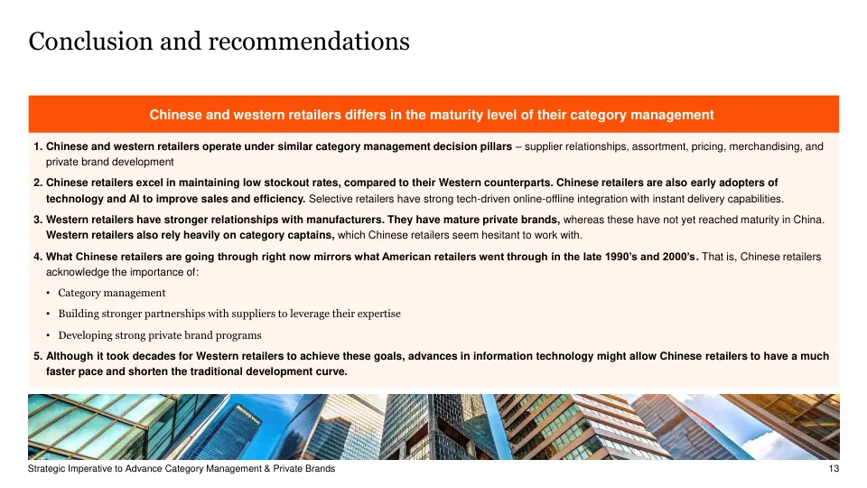 报告最终指出,中国零售商正站在一个关键的十字路口。虽然起步晚于西方,但凭借对本土市场的深刻理解、强大的数字化基础和敏捷的行动力,完全有机会走出一条融合国际最佳实践与中国市场特色的品类管理新路。未来的赢家,将是那些能够通过卓越的品类管理和成功的自有品牌,精准满足分层化消费者需求,并与供应商构建共生共赢生态系统的零售商。