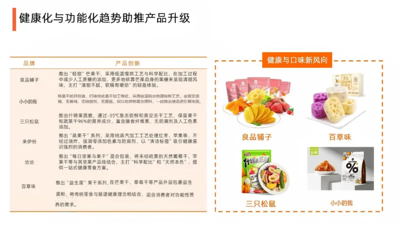 消费洞察上,食材纯粹度(80.6%)、口感风味(78.7%)成为消费者选购果干蜜饯的核心考量,综合电商(52.2%)和大型商超(38.2%)为核心购买渠道。例如:三只松鼠在2026年没有停留在营销口号层面,而是启动了 “透明工厂”深度开放计划。百草味选择回归与创新并重,将传统智慧与现代消费需求结合。“古法新作”产品线,与浙江、福建、广东等地的非遗蜜饯技艺传承人合作,推出限量系列。例如,复原“九制陈皮”古法工艺,但降低盐糖度,并推出“陈皮巧克力脆”、“陈皮气泡冻干”等创新形态,让老味道吸引新人群。