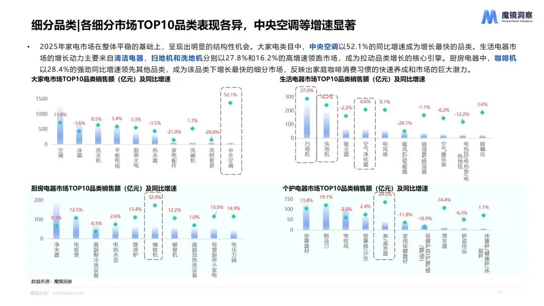 2025年,家电市场在中国主流电商平台上实现销售额7663.5亿元,同比增长18.1%,销量17.1亿件,同比增长46.8%,量价齐升,新兴品类与渠道重构行业格局。