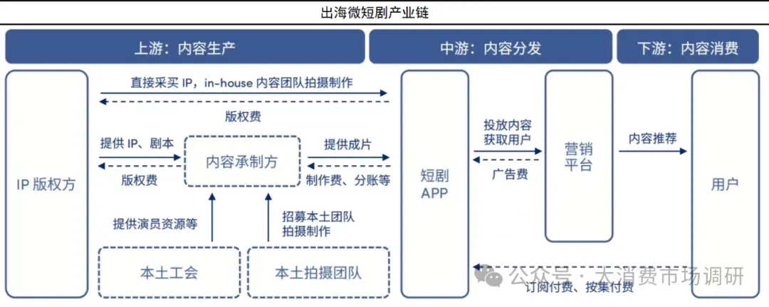 u 当前出海短剧产业链主要由短剧 APP、承制方、营销平台等角色方组成。区别于国内,目前在出海短剧的内容上下游中,版权商仍旧是当前短剧分发投放环节的主要角色;但借鉴国内发展经验,分销商的引进能够促进行业快速发展,未来海外短剧也可进⼀步探索分销商模式的可行性。