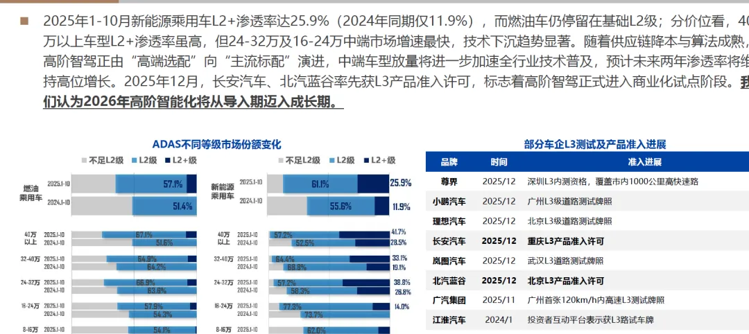 智能化:L3产品准入,高阶智能化从导入期迈入成长期