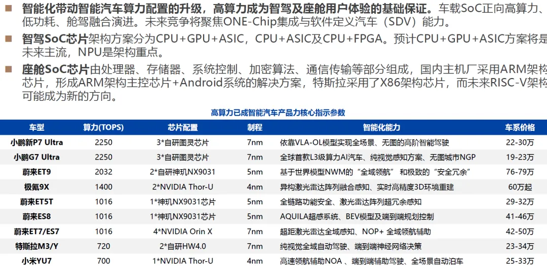 算力芯片:高阶智能化趋势下智驾及座舱对算力需求加大