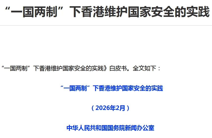 数据:截至2026年1月,依据香港国安法,共有98人被检控、78人被定罪;危害国家安全犯罪案件占全部刑事犯罪案件比例不到0.2%。