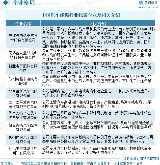 汽车线缆行业企业格局和重点企业分析