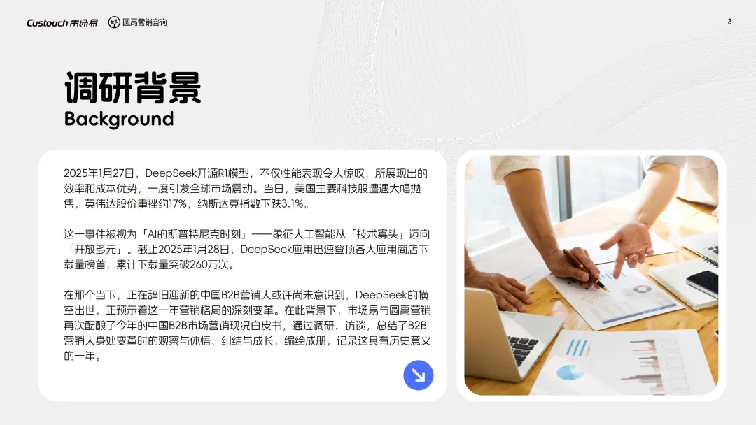 AI技术爆发:DeepSeek开源模型的发布被视为“AI创新的斯普特尼克时刻”,推动AI从技术寡头走向开放多元,深刻影响B2B营销格局。
