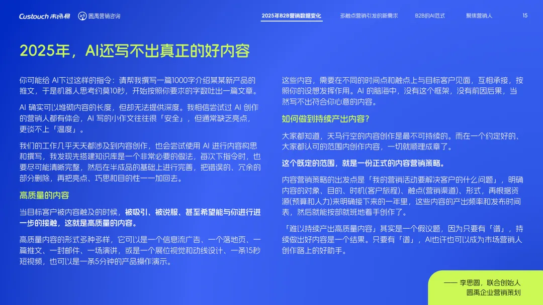 AI不是替代,而是赋能:营销人需从“工具使用者”转变为“AI协同者”,聚焦商业洞察与策略设计。