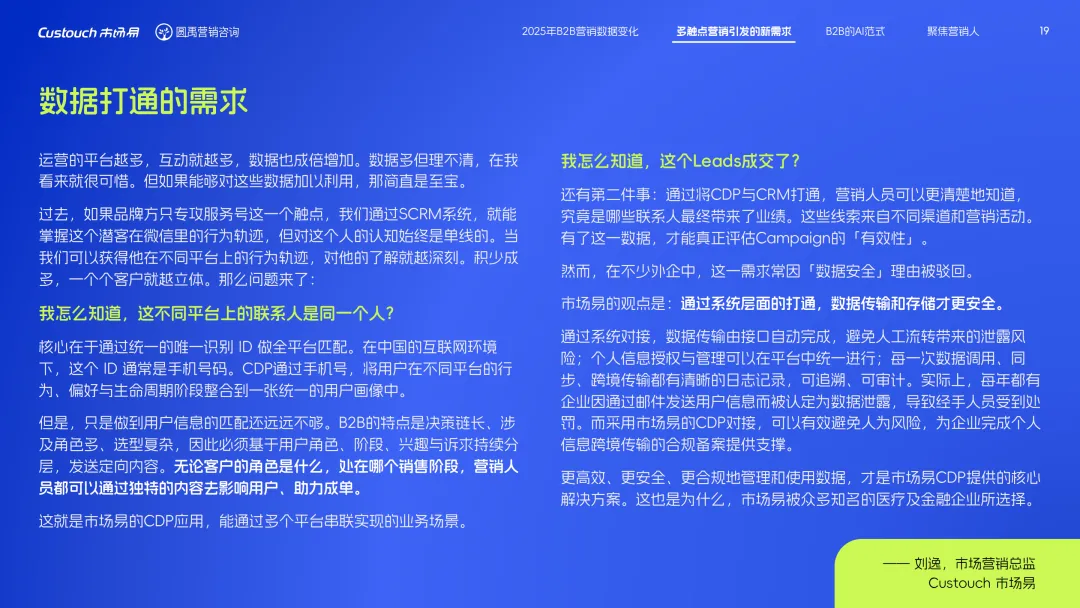 数据是未来竞争力:打通多触点数据、构建CDP是提升营销精准度和效果验证的关键。