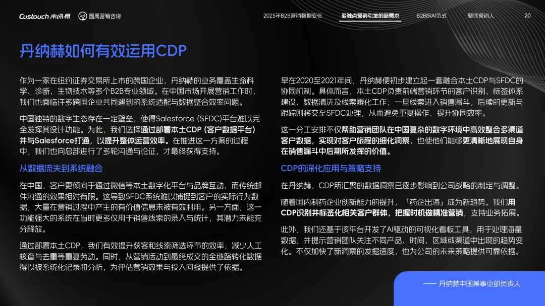 丹纳赫:通过本土CDP与Salesforce打通,实现数据整合与营销效果可衡量。