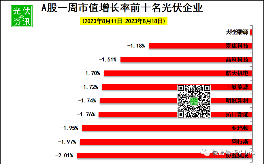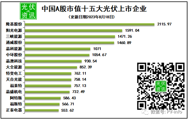 本周下降5.48%!8月18日光伏企业市值排行榜