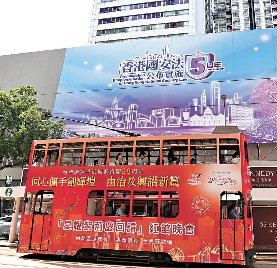 圖為香港國安法公布實施 5周年巨型海報。 資料圖片