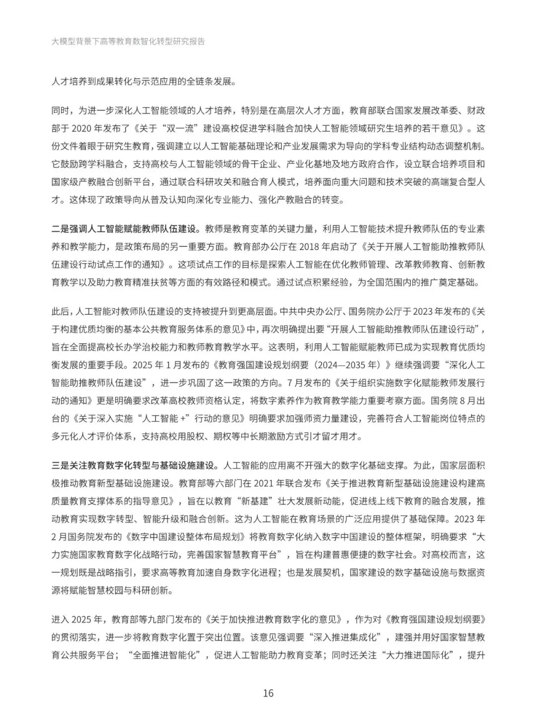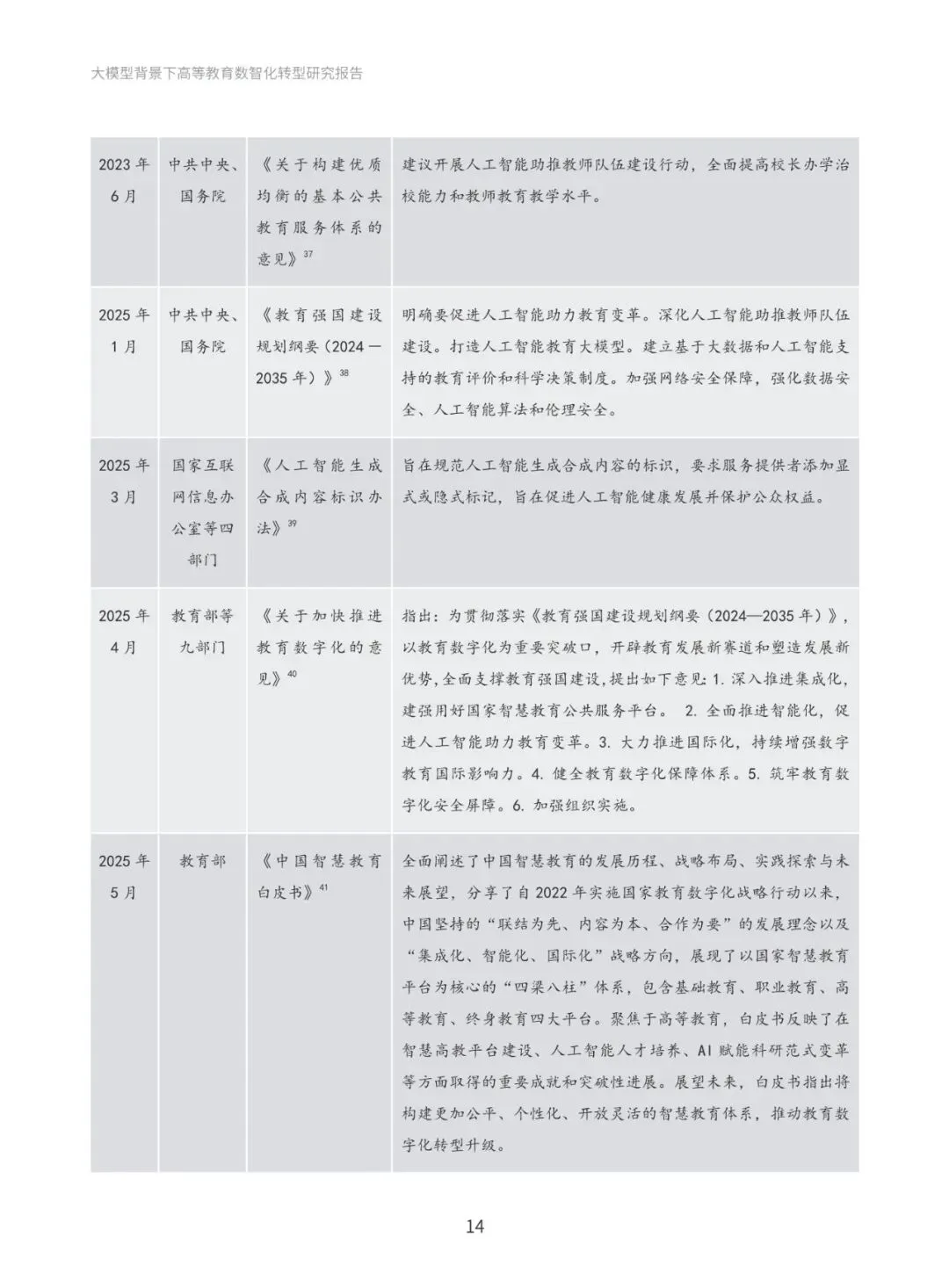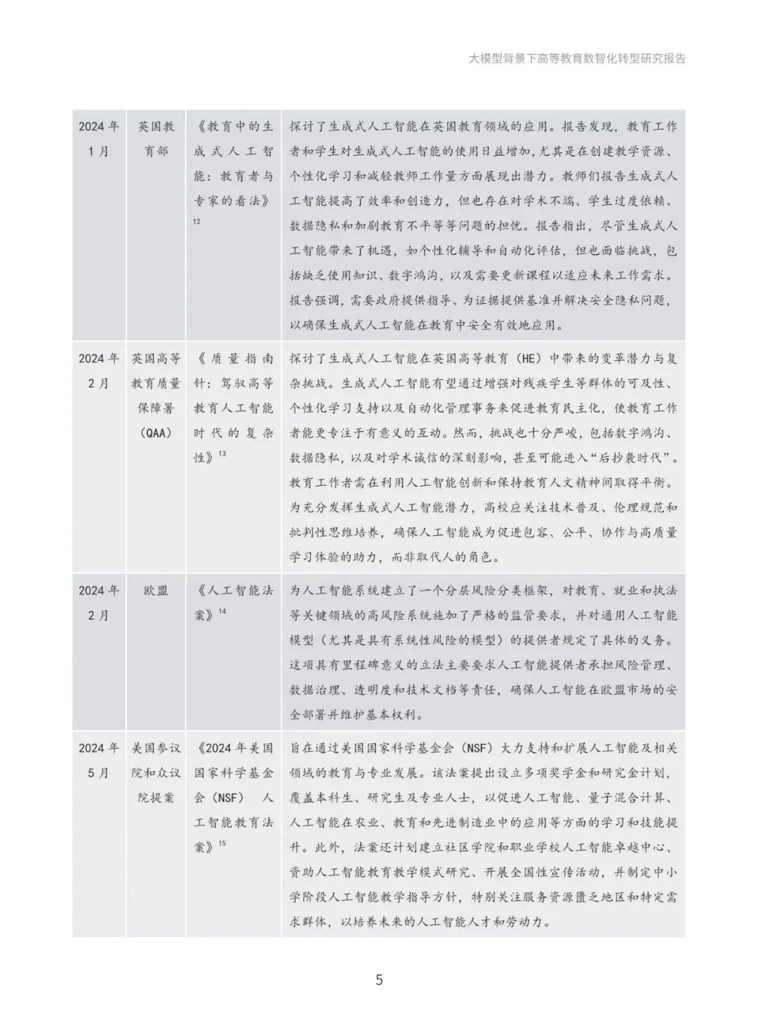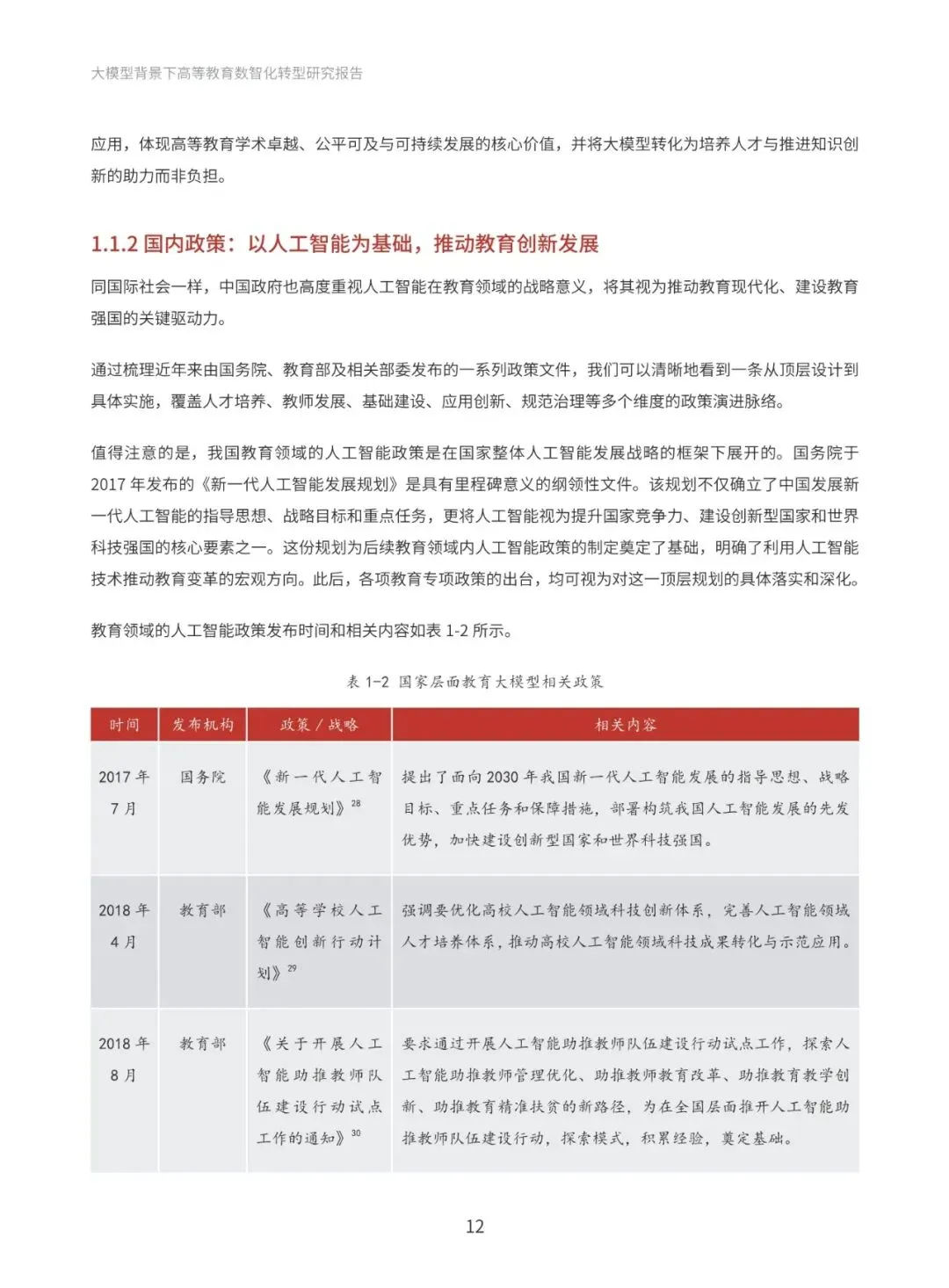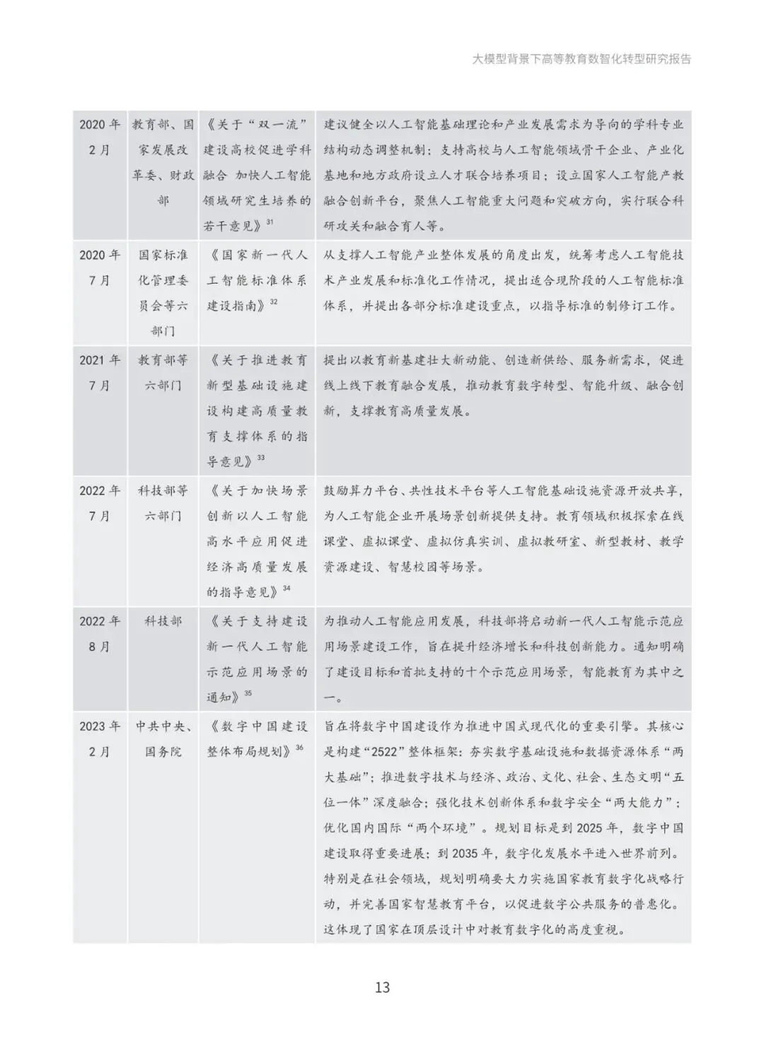 本报告系统梳理国际与国内政策进展,深入分析国际社会高度重视人工智能教育应用的政策动向,以及国内以人工智能为基础推动教育创新发展的政策布局。通过政策梳理与分析,提炼出“人才培养、科学研究、社会服务与国际合作”四大导向,明确高等教育数智化转型的发展方向和战略目标。