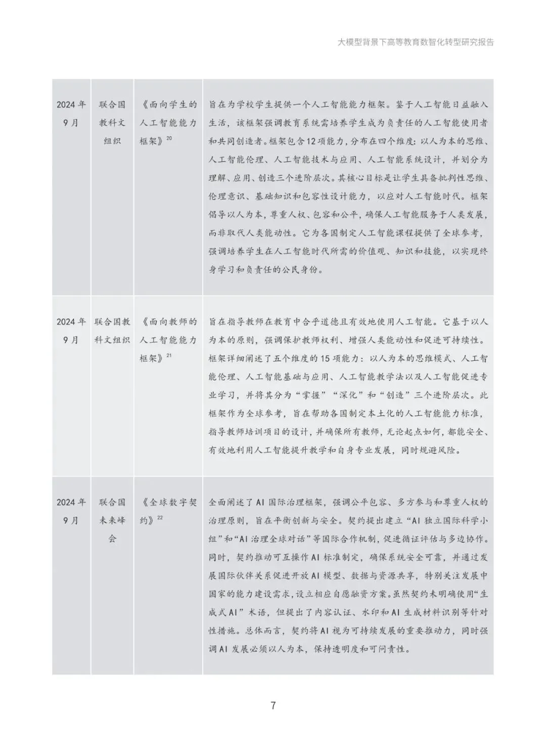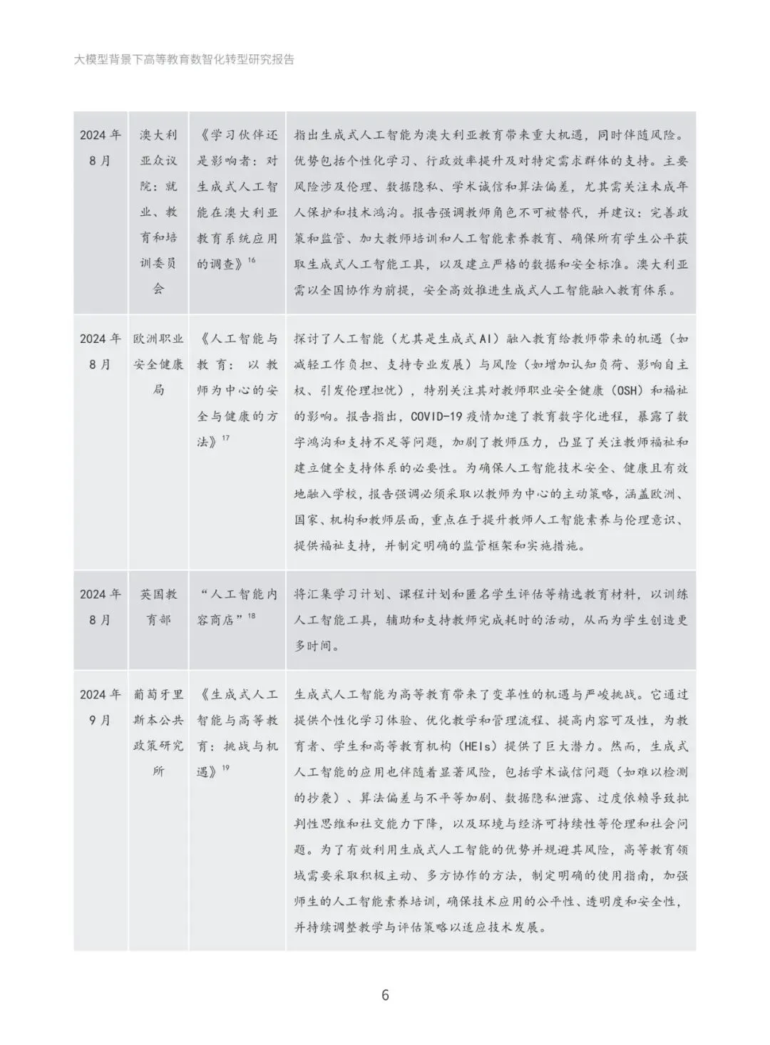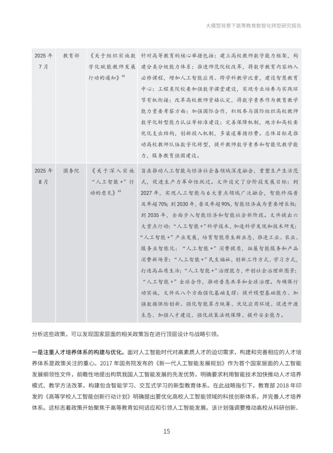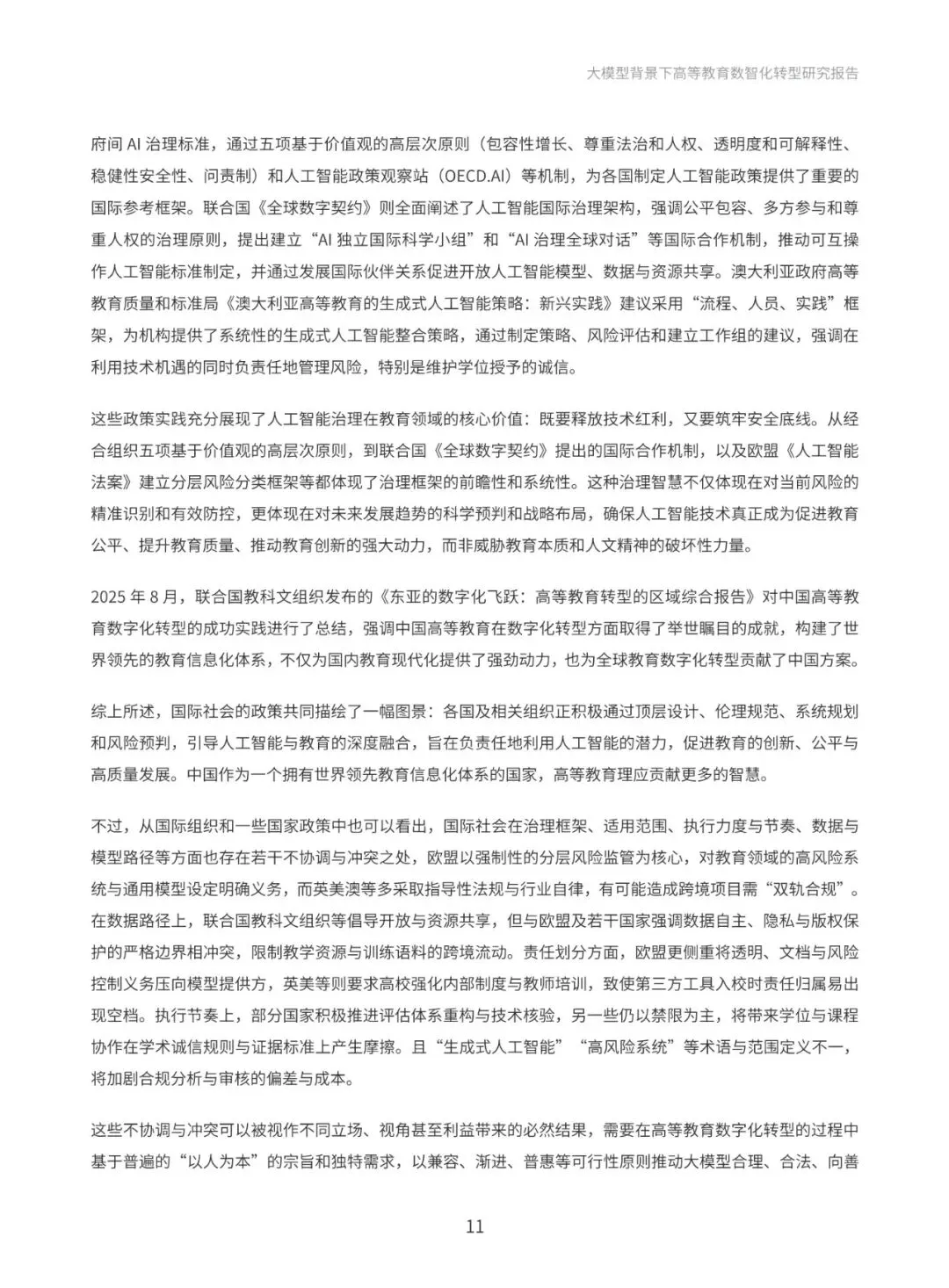本报告系统梳理国际与国内政策进展,深入分析国际社会高度重视人工智能教育应用的政策动向,以及国内以人工智能为基础推动教育创新发展的政策布局。通过政策梳理与分析,提炼出“人才培养、科学研究、社会服务与国际合作”四大导向,明确高等教育数智化转型的发展方向和战略目标。