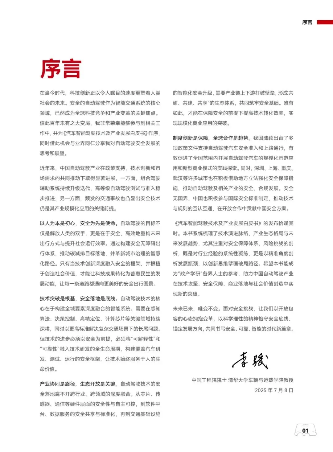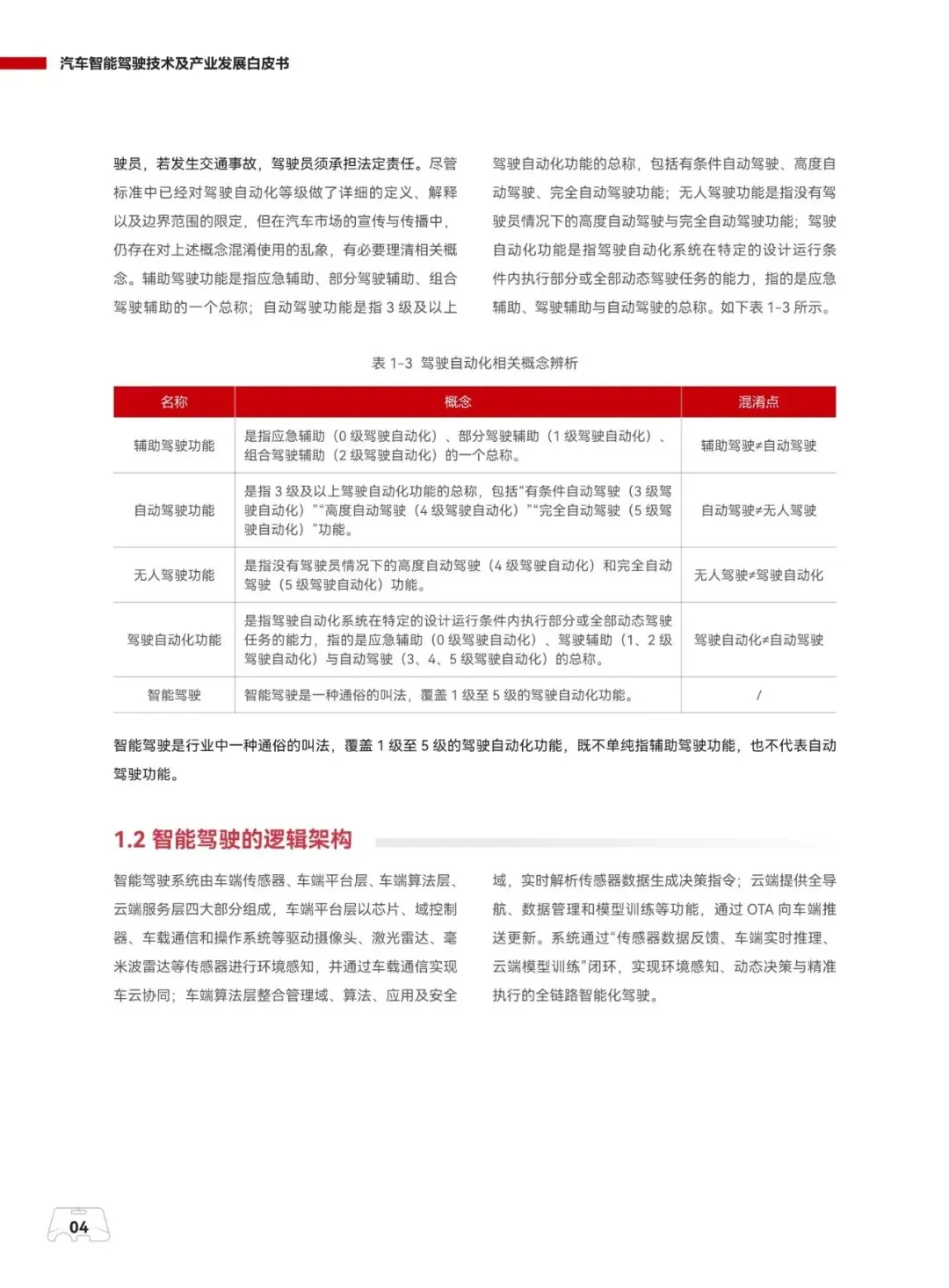 7月8日,由中国汽车技术研究中心牵头,联合清华大学和华为共同撰写的《汽车智能驾驶技术及产业发展白皮书》正式发布。该白皮书从宏观角度系统阐述了智能驾驶产业的未来发展,涵盖从L0到L5的驾驶自动化全场景功能体系,包括智能驾驶的概念、技术演进路径、产业化实现方案、应用场景、安全体系构建及产业生态协同发展等内容。白皮书明确指出,“智能驾驶”是一个通俗叫法,既不单纯指辅助驾驶功能,也不代表完全自动驾驶功能。