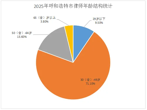 2025年,呼和浩特市执业律师年龄结构呈现出以中青年为绝对主力的合理分布态势,50岁以下律师占比达80.6%,其中30-49岁黄金年龄段律师占比超七成,这样的年龄梯队不仅让呼和浩特市律师行业保持着强劲的市场活力与创新动力,更为行业长期健康发展奠定了坚实的人才基础,有助于持续提升法律服务的专业水准与高效响应能力。