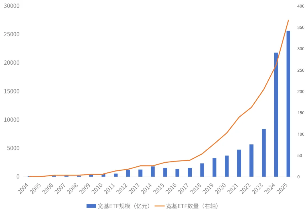 《促进资本市场指数化投资高质量发展行动方案》明确要求,将存量指数基金的指数使用费由基金资产承担调整为由基金管理人承担,并推动降低指数使用和管理等费用。2025年3月,相关基金管理人发布公告,ETF指数使用费改为由管理人承担,不再从基金资产列支。4月,中证指数公司和深圳证券信息有限公司同步调降指数使用费率,将股票指数ETF费率下调20%,并规定不再收取许可使用固定费等。此外,头部ETF基金管理人纷纷调降ETF管理费,进一步让利增厚了投资者收益。目前,“管理费0.15%+托管费0.05%”的组合已成为核心宽基ETF的普遍标准,并且降费趋势已从宽基产品迅速拓展至红利、科技、跨境等ETF,成为市场主流产品的“标配”。整体来看,2025年共25只ETF调降,叠加股票ETF指数使用费调整,以年底保有规模测算,每年可为投资者节省约14.28亿元持有成本。