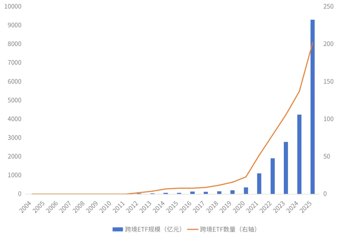 2025年,新发的跨境ETF集中于科技领域,相关主题产品共发行23只。截至年底,产品总规模为401亿元,较发行规模增长159%。投资者不仅通过跨境ETF进行地域分散,更聚焦于在全球范围内捕捉以科技为代表的长期增长机遇。