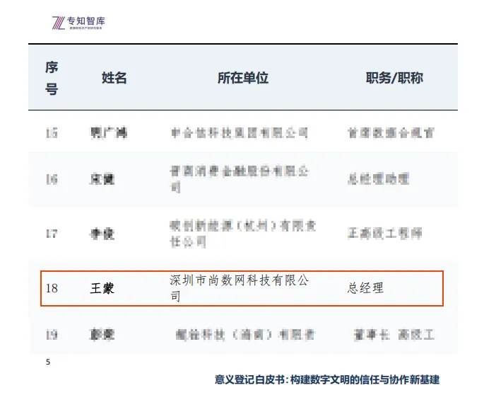 2026年2月,《意义登记白皮书:构建数字文明的信任与协作新基建》正式发布。该白皮书由自指余行论研究中心与专知智库联合发布,深圳市尚数网科技有限公司(以下简称“尚数网”)深度参编。尚数网总经理王蒙携手行业顶尖专家,以专业领域的深厚积淀与前瞻视野,为推动我国数据基础设施建设贡献了智慧与实践经验。