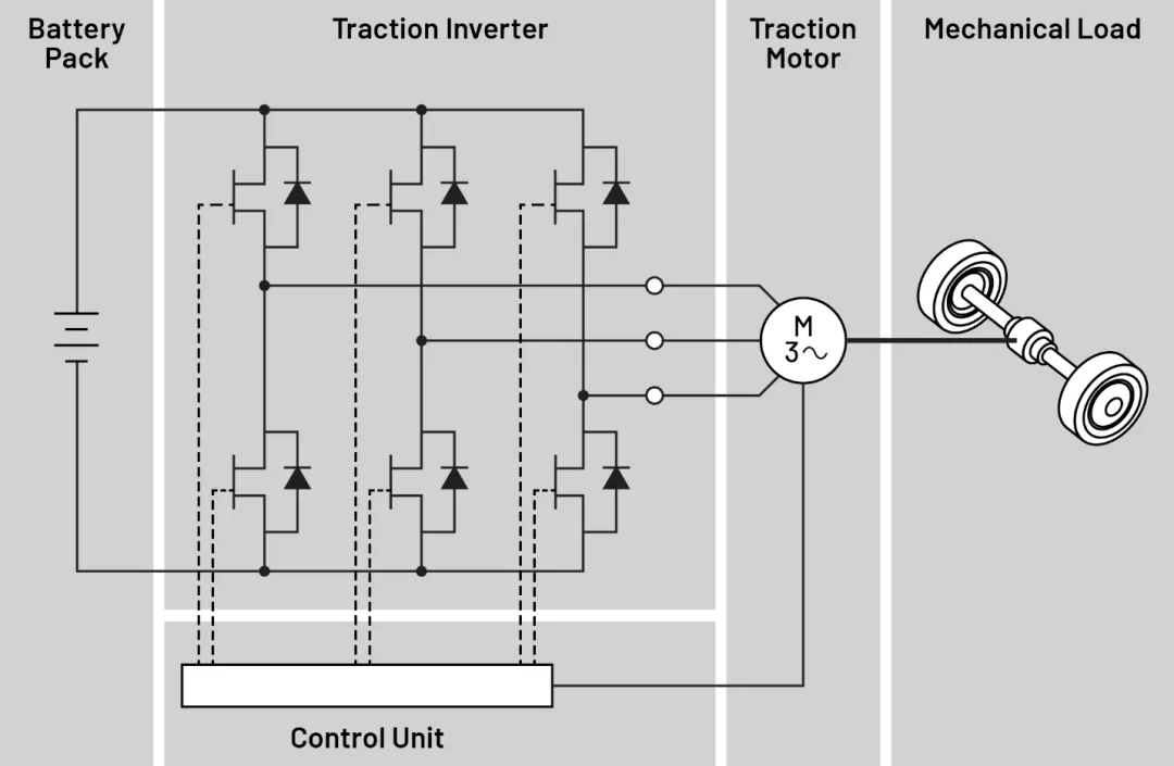 与传统汽车不同,电动汽车的动力系统运行环境更加复杂。牵引逆变器需要将电池的直流电转换为三相交流电,通过精确的脉冲宽度调制(PWM)控制电机运行。这一过程涉及高频开关操作(通常为20-100kHz)、高电压(最高可达800V)和大电流(数百安培)等苛刻条件。