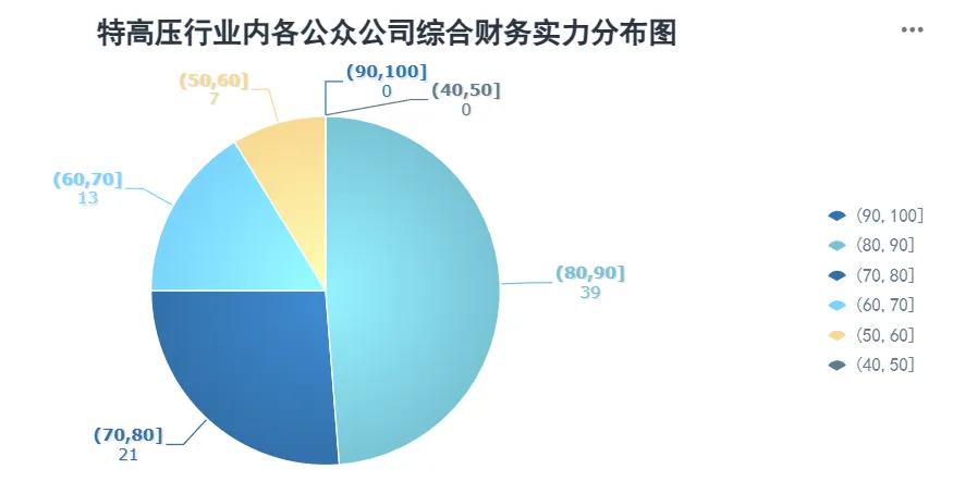 特高压行业所有公众公司综合财务实力统计均值为76.32,极差值为52.84,标准差9.59。
