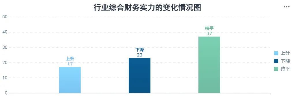 | 特高压行业综合财务实力变化情况是指行业内公司综合财务实力分数相较于过去一年中的同比变动幅度大于等于5%以上的情况, 其中变动分为上升和下降,此外变动浮动小于5%以内,定义为持平,反映了行业内不同受评主体综合财务实力变化的趋势。 |