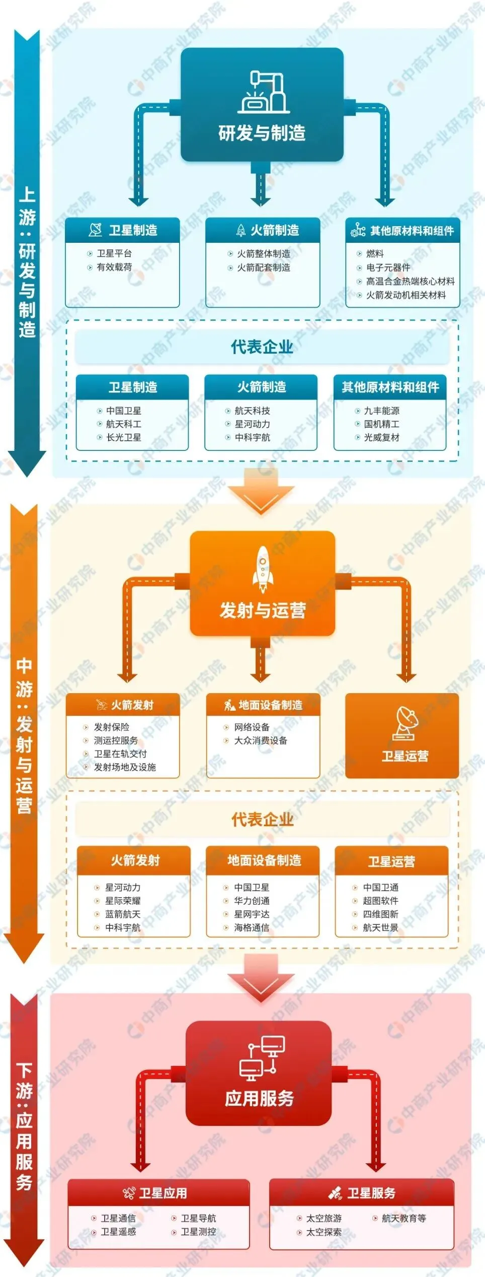 产业链:商业发射的产业链涵盖了原材料供应、零部件制造、火箭和卫星的总装测试、发射服务、卫星运营、地面设备制造等多个环节。每个环节都有其专业要求和技术标准,形成了一个高度复杂且相互依赖的产业网络。