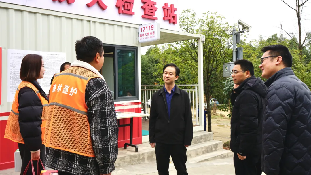 在蒲阳街道铜马沟森林防灭火卡点,蒋蔚炜详细了解人员值守、火源管控、物资储备等防火措施落实情况,并看望慰问卡点值守工作人员,向他们致以新春问候,希望大家继续坚守岗位、把住卡口,扎实做好宣传教育、巡护巡查、火源管控等工作,全力提升防灭火应急处置能力,合力打好森林防灭火持久战。