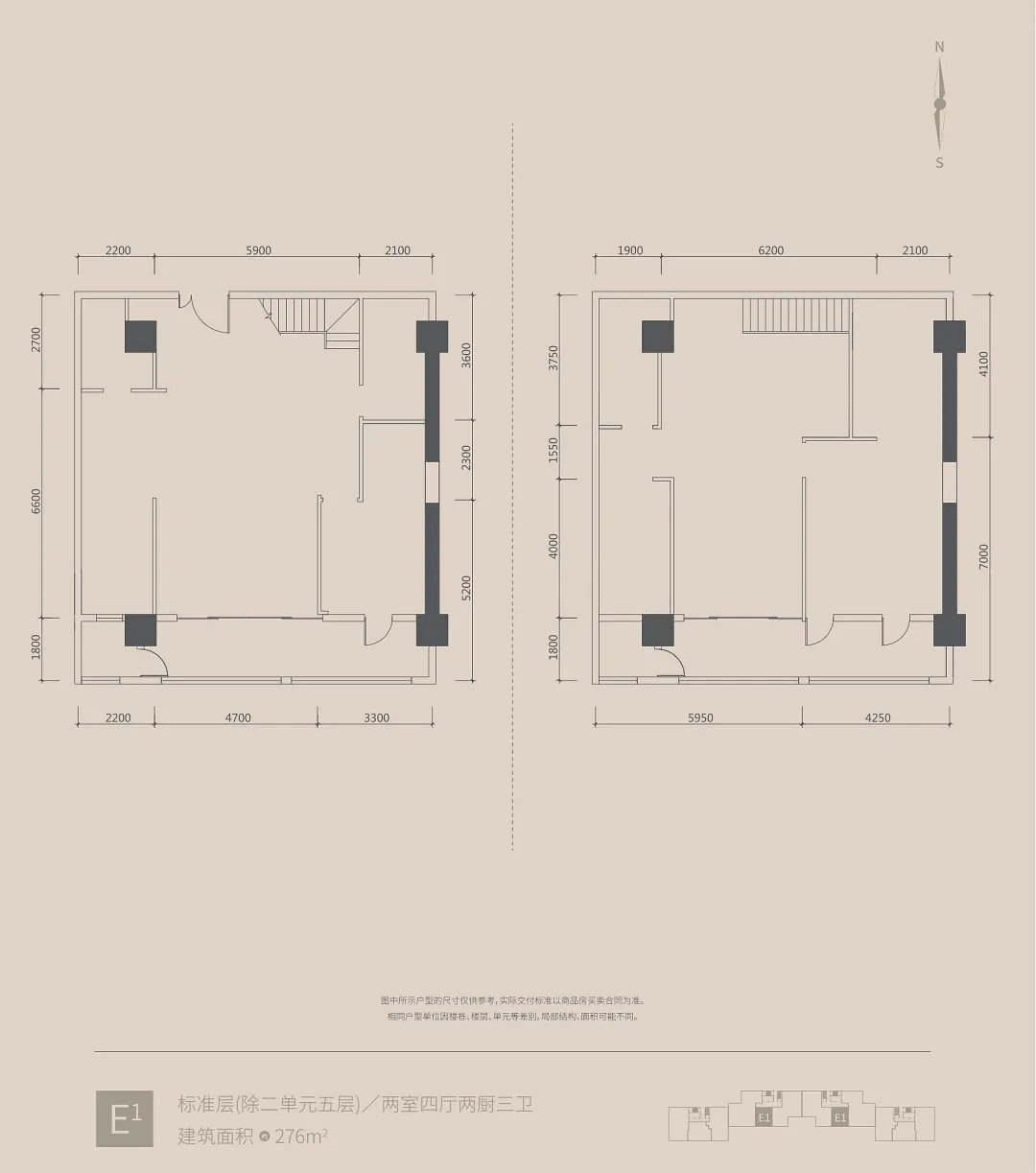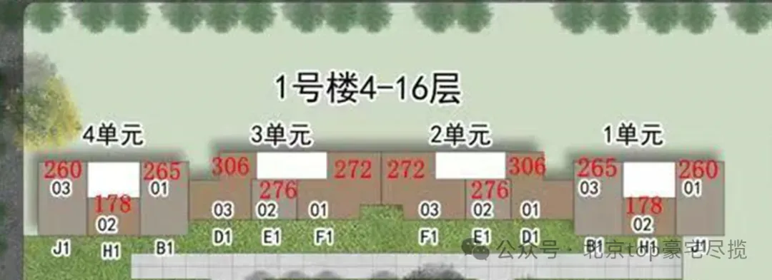 ⑤272平米南北四居,1号楼2、3单元位置↑