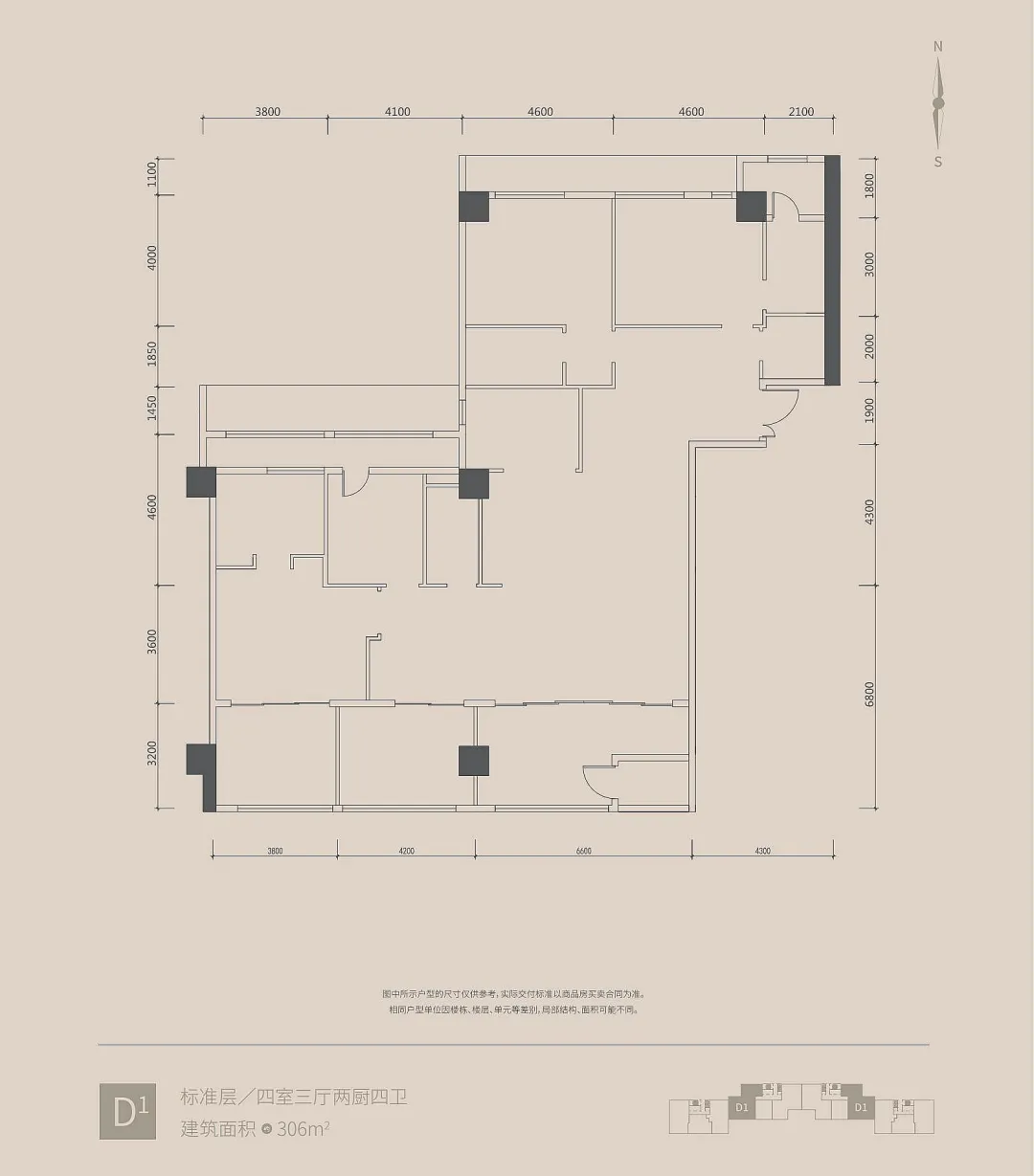 ⑥306平南北四居,1号楼2、3单元,可做五居↑